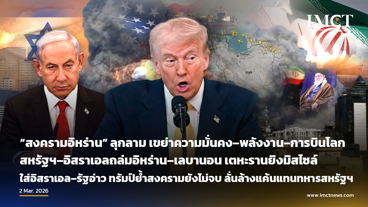 สหรัฐฯ–อิสราเอลถล่มอิหร่าน–เลบานอน อิหร่านยิงมิสไซล์ถล่มอิสราเอล–รัฐอ่าว “สงครามอิหร่าน” ลุกลามทั้งภูมิภาค ทรัมป์ลั่นล้างแค้นทหารสหรัฐฯ รัสเซีย–จีน–EU เตือนวิกฤตเสี่ยงควบคุมไม่อยู่ (อัปเดตสถานการณ์ถึงเช้า 2 มี.ค. 2569 ตามเวลาไทย)