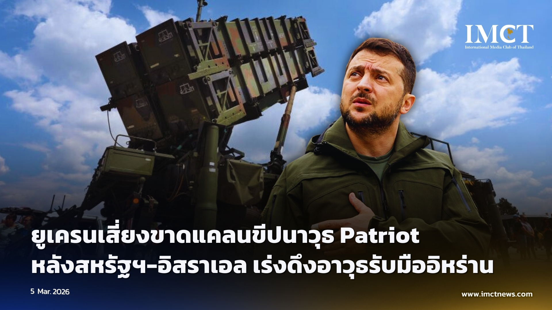 สำนักข่าว Reuters รายงานว่า ท่ามกลางสถานการณ์สงครามที่ปะทุขึ้นระหว่างสหรัฐฯ (US) และอิหร่าน (Iran) ประเทศยูเครน (Ukraine) กำลังเผชิญกับภาวะวิกฤตในการจัดหาขีปนาวุธป้องกันภัยทางอากาศ โดยเฉพาะระบบ PAC-3 Patriot ที่เป็นหัวใจหลักในการป้องกันเมืองและโครงสร้างพื้นฐานทางพลังงานจากการโจมตีของรัสเซีย (Russia) เนื่องจากความต้องการอาวุธชนิดนี้ในภูมิภาคอ่าวเปอร์เซียพุ่งสูงขึ้นอย่างก้าวกระโดด