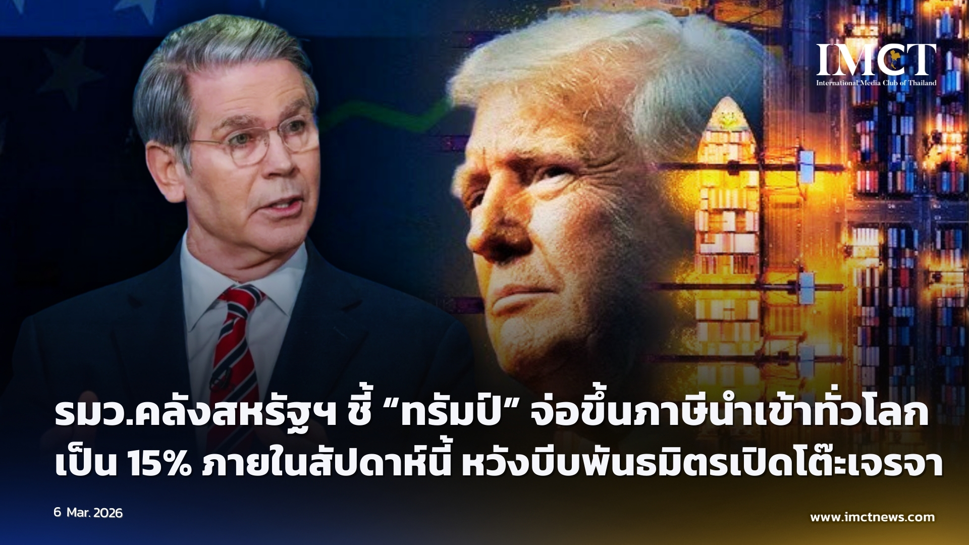 รมว.คลังสหรัฐฯ ชี้ “ทรัมป์” จ่อขึ้นภาษีนำเข้าทั่วโลกเป็น 15% ภายในสัปดาห์นี้ หวังบีบพันธมิตรเปิดโต๊ะเจรจา