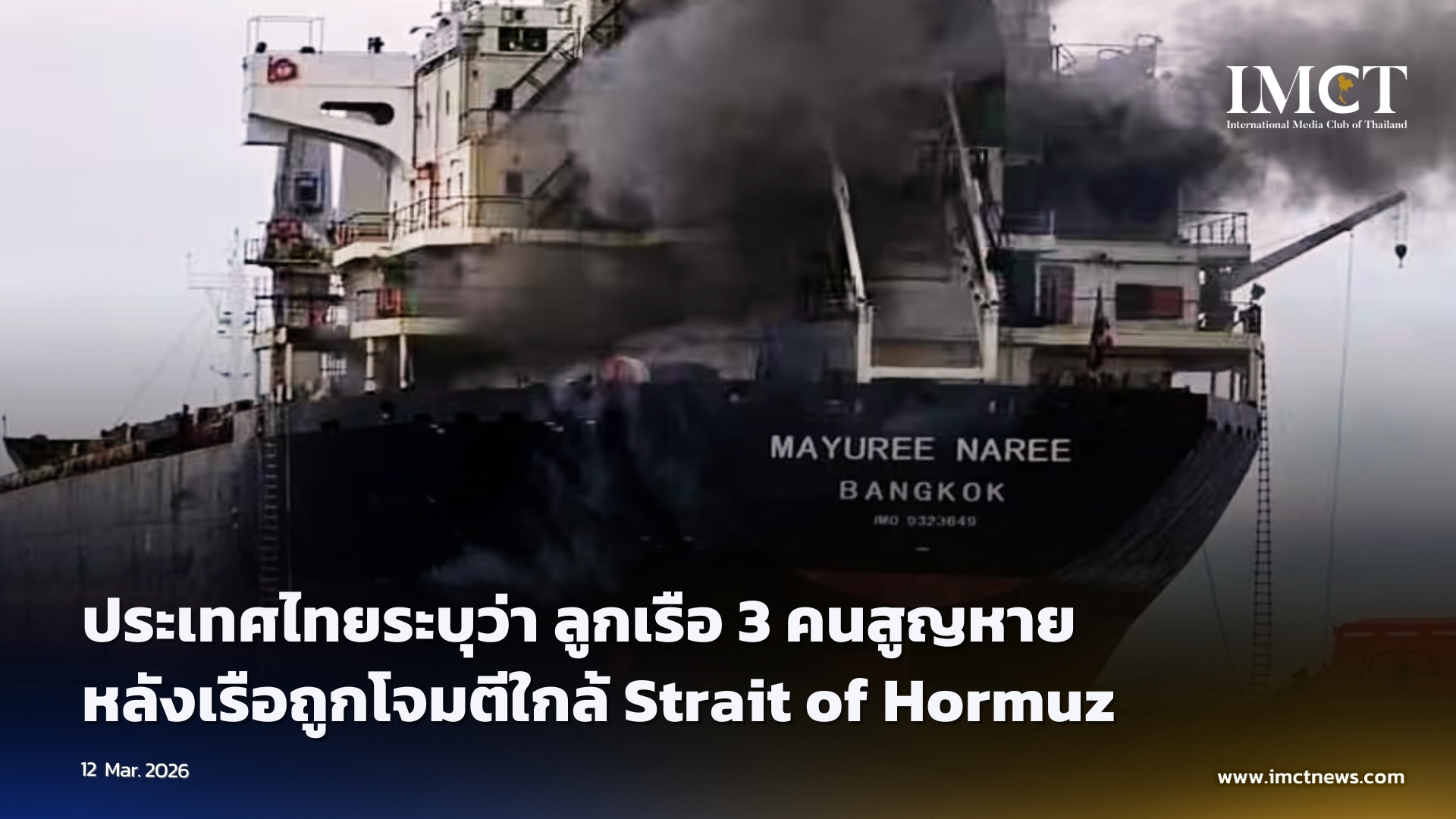 ประเทศไทยระบุว่า ลูกเรือ 3 คนสูญหาย หลังเรือถูกโจมตีใกล้ Strait of Hormuz