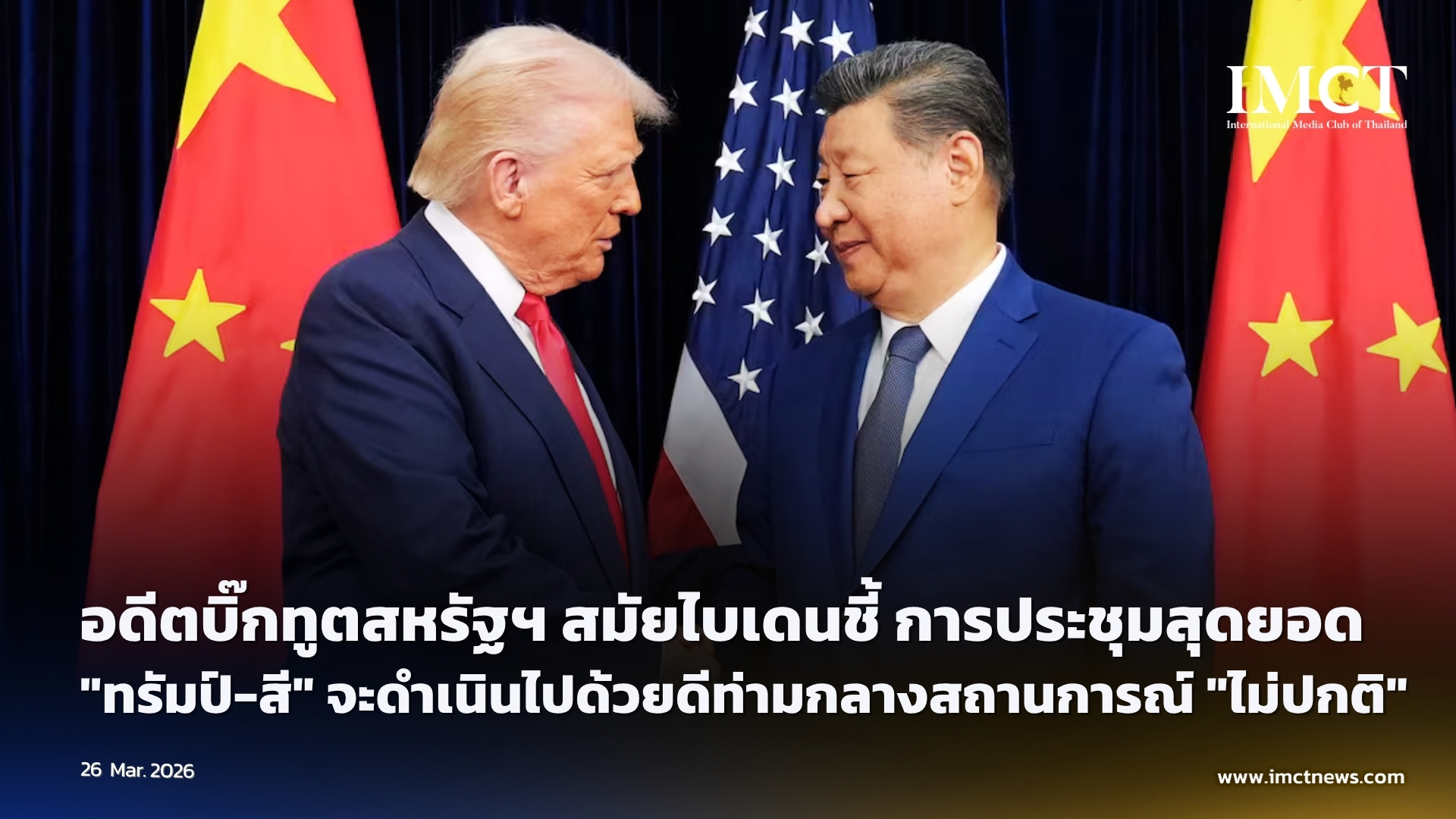 อดีตบิ๊กทูตสหรัฐฯ สมัยไบเดนชี้ การประชุมสุดยอด "ทรัมป์-สี" จะดำเนินไปด้วยดีท่ามกลางสถานการณ์ "ไม่ปกติ"
