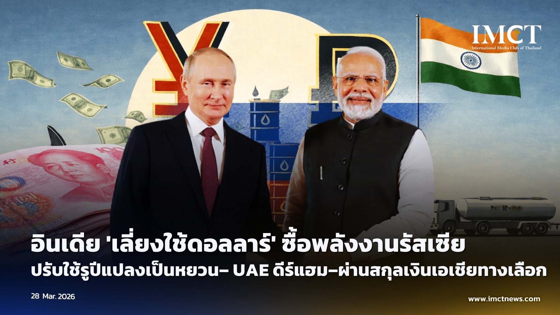 อินเดีย 'เลี่ยงใช้ดอลลาร์' ซื้อพลังงานรัสเซีย ปรับใช้รูปีแปลงเป็นหยวน– UAE ดีร์แฮม–ผ่านสกุลเงินเอเชียทางเลือก
