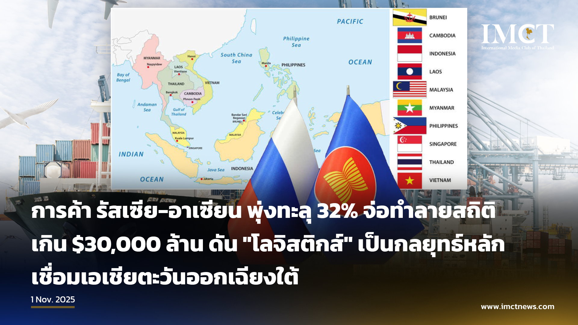 การค้า รัสเซีย-อาเซียน พุ่งทะลุ 32% จ่อทำลายสถิติเกิน $30,000 ล้าน ดัน "โลจิสติกส์" เป็นกลยุทธ์หลักเชื่อมเอเชียตะวันออกเฉียงใต้
