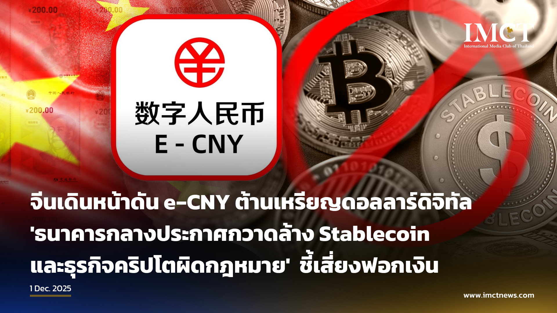 จีนเดินหน้าดัน e‑CNY ต้านเหรียญดอลลาร์ดิจิทัล 'ธนาคารกลางประกาศกวาดล้าง Stablecoin และธุรกิจคริปโตผิดกฎหมาย' ชี้เสี่ยงฟอกเงิน