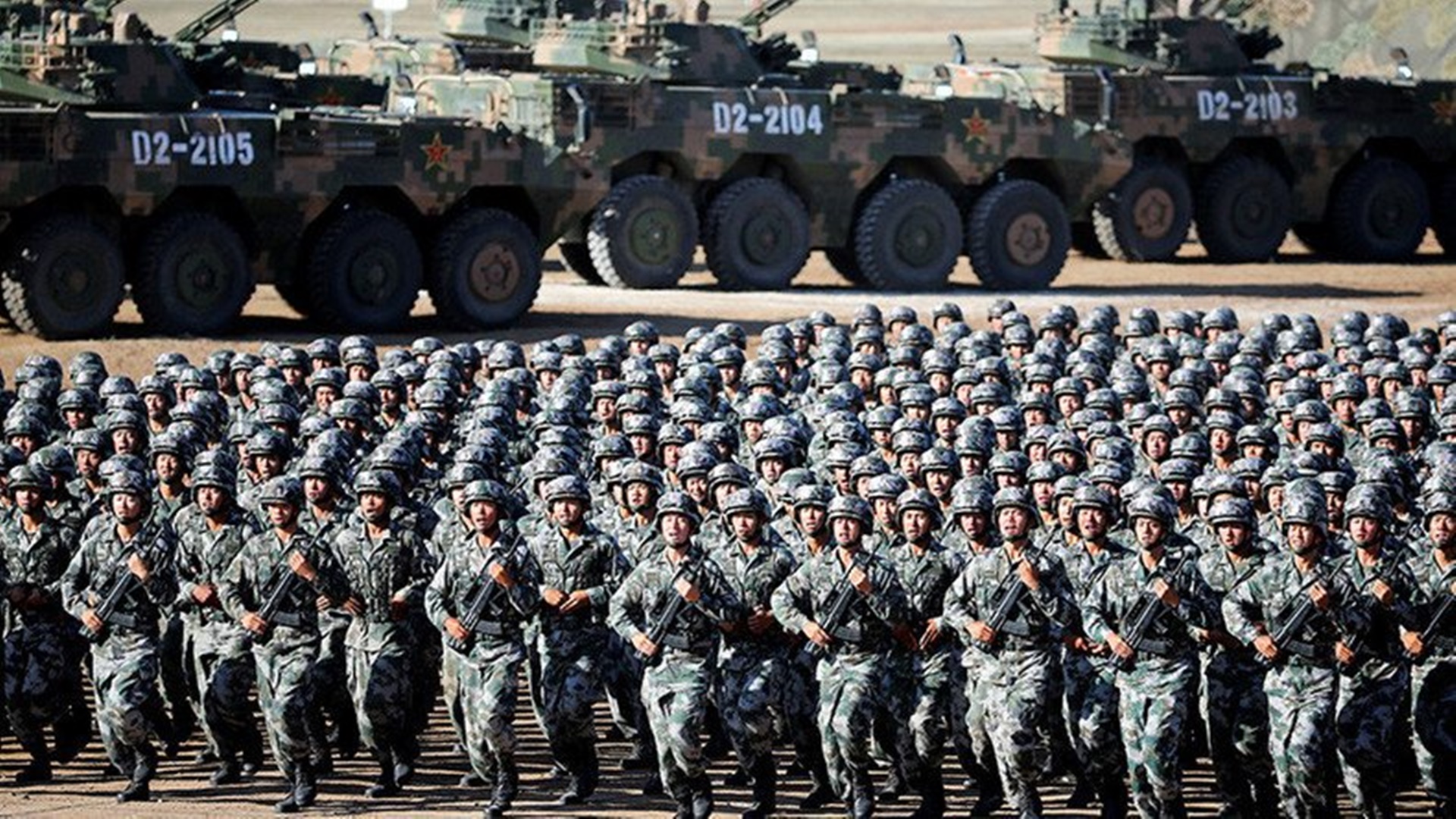 จีนมีกำลังทหารที่เข้าประจำการมากสุดในโลก คือเกินกว่า 2 ล้านคน จีนยังเพิ่มงบการทหารมากขึ้นในช่วงหลายสิบปีที่ผ่านมา จีนมีจำนวนรถถังมากเป็นอันดับสาม และมีเรือบรรทุกเครื่องบินที่ใช้อยู่ในตอนนี้ มากเป็นอันดับสองของโลก